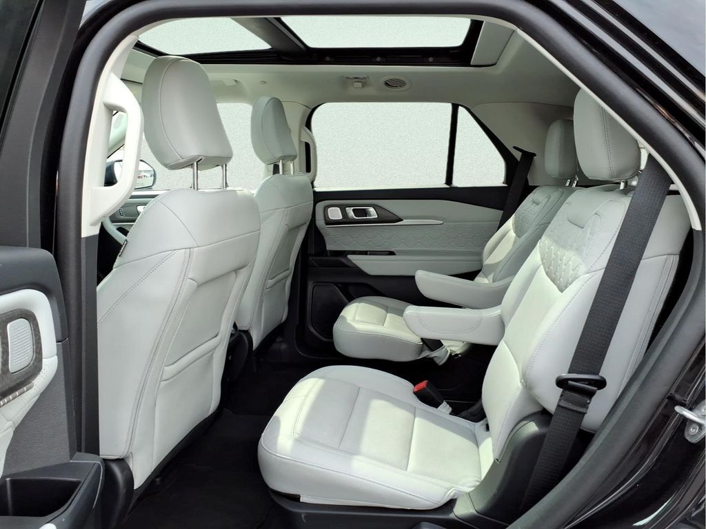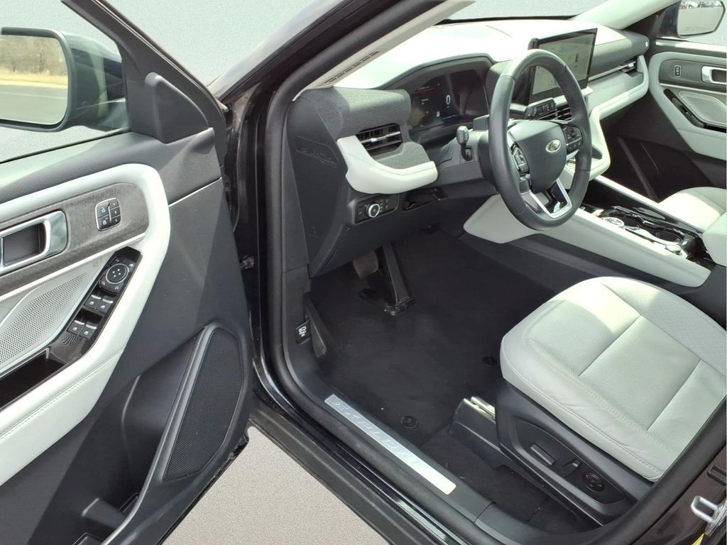 Finished in Agate Black Metallic with Crystal Gray leather interior, this Explorer Platinum offers a bold upscale appearance with a spacious and technology-packed interior.